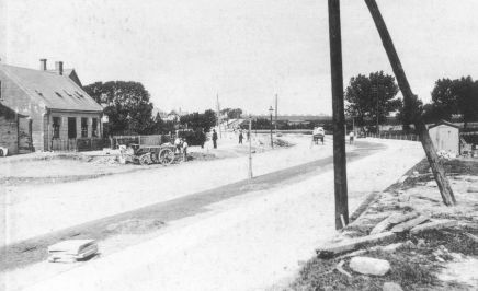 1910. Hestevogn passerer en længe af den gamle Rytteskole på Brønshøjvej ned mod gadekæret. Længen blev siden brudt ned af hensyn til vejen udvidele og sporvogn linje 2.